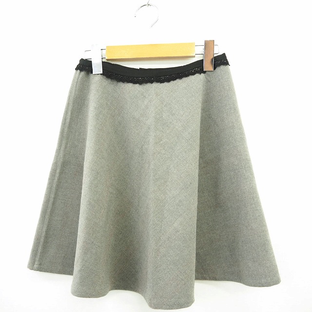 【中古】フェルゥ Feroux フレアスカート レース ひざ丈 シンプル 1 グレー ブラック 灰 黒 /MT23 レディース