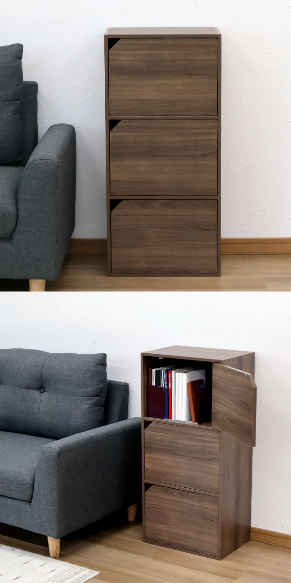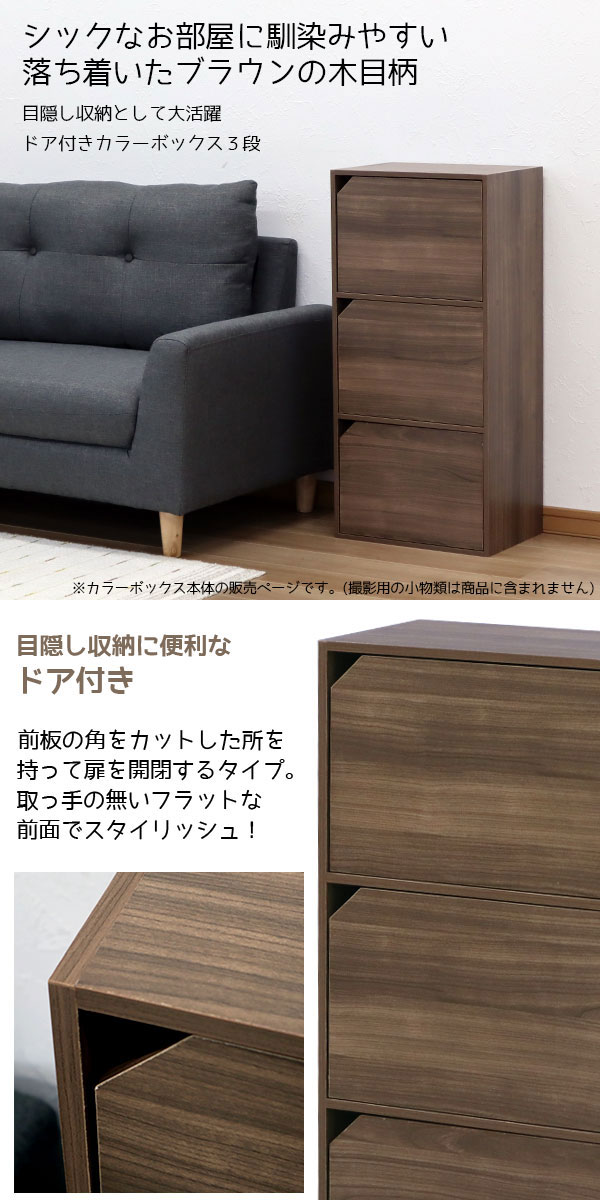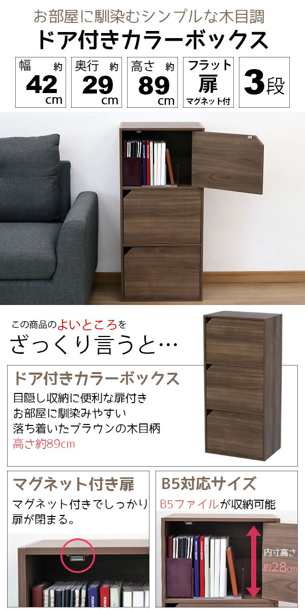 ドア付きカラーボックス3段