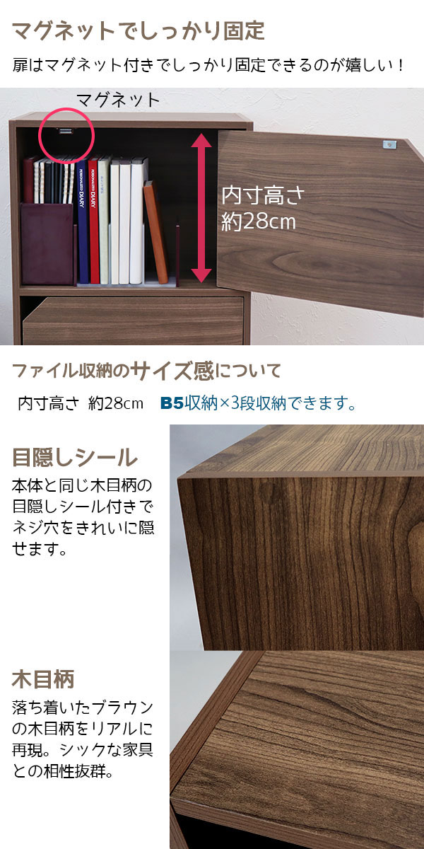 2個セット カラーボックス3段 フラットドア付き B5ファイル対応 フラット扉付き収納棚 目隠し収納 幅41.5cm 奥行29.2cm 高さ88.9cm(約 幅42cm 奥行30cm 高さ90cm)教科書 学用品 子ども部屋 シンプル 木目柄 おしゃれ かわいい 洗面所 キッチン 漫画 本棚 コミック CA-8942