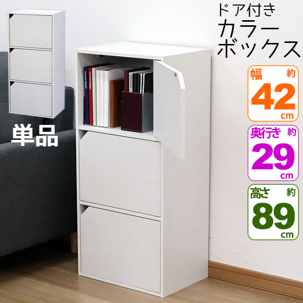 カラーボックス3段 フラットドア付き B5ファイル対応 フラット扉付き収納棚 目隠し収納 幅41.5cm 奥行29.2cm 高さ88.9cm(約 幅42cm 奥行30cm 高さ90cm)教科書 学用品 子ども部屋 シンプル 木目柄 おしゃれ かわいい 洗面所 キッチン 漫画 本棚 コミック CA-8941 単品