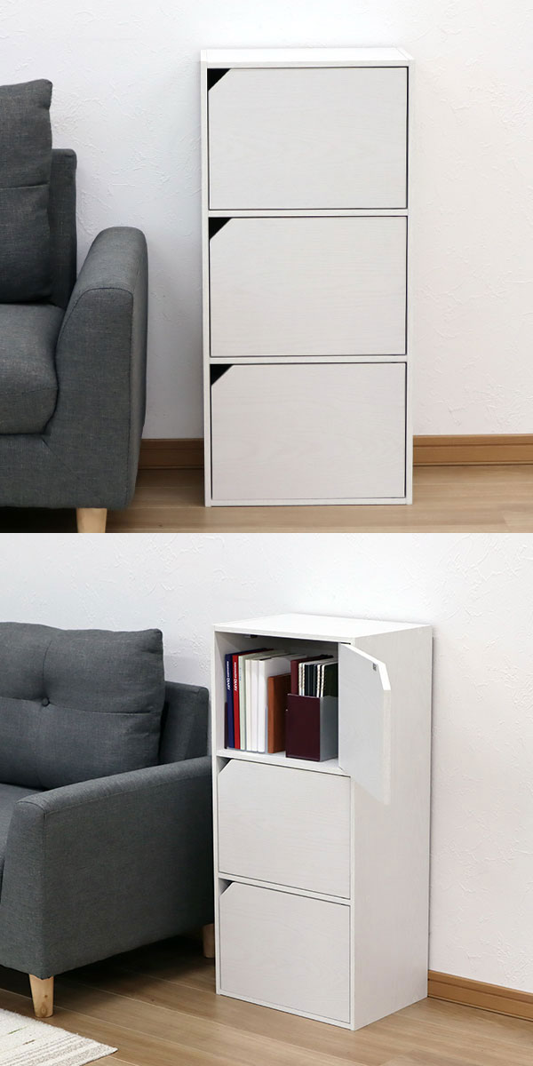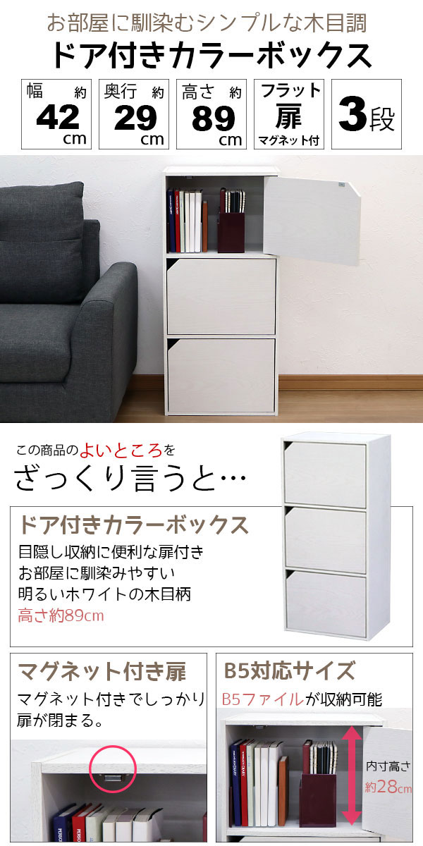 ドア付きカラーボックス3段