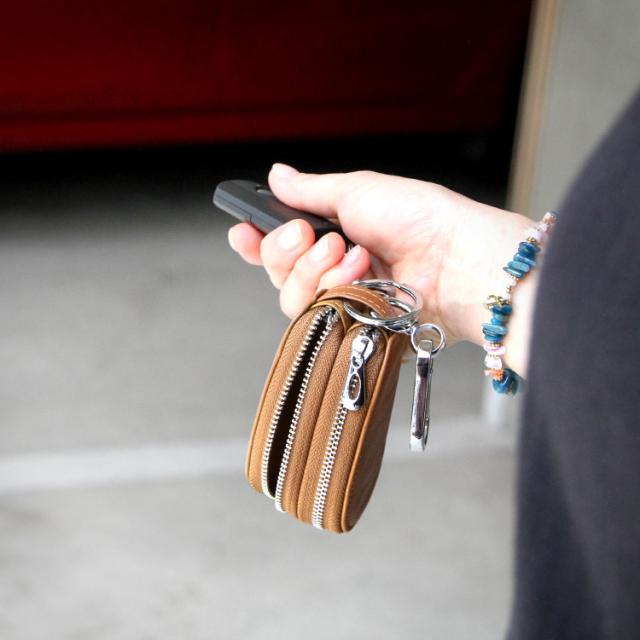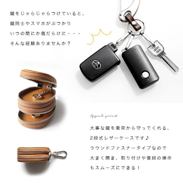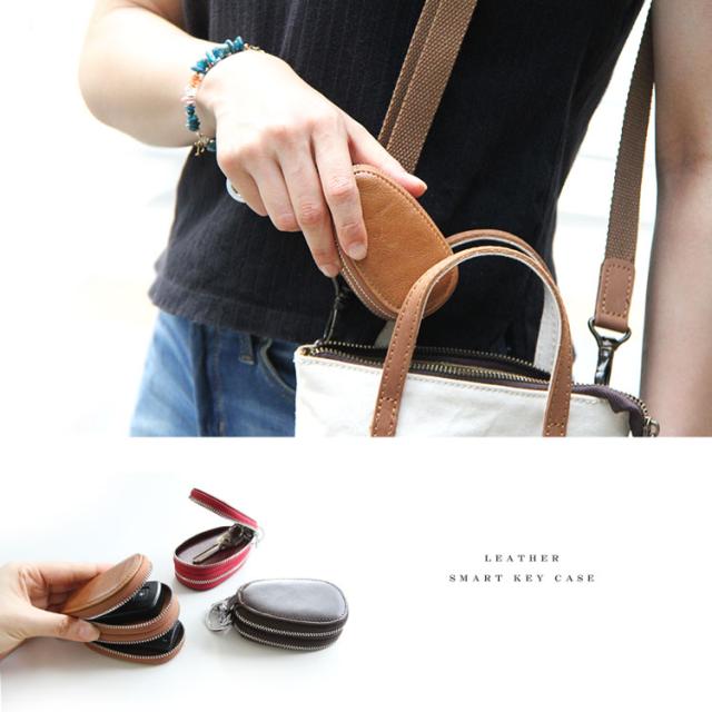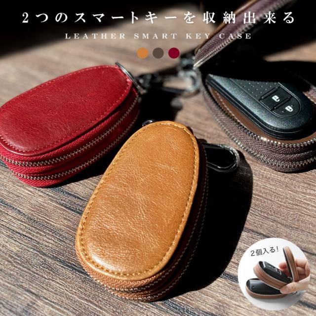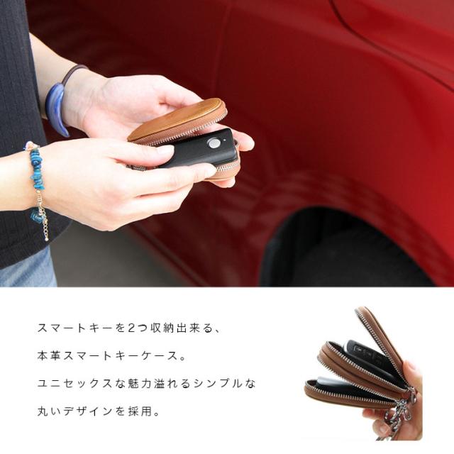 しなやかで耐久・撥水性のあるオイルレザーを使用したスマートキー専用のキーケースです。ダブルラウンドファスナーで家と車など2種類のスマートキーを収納することができます。