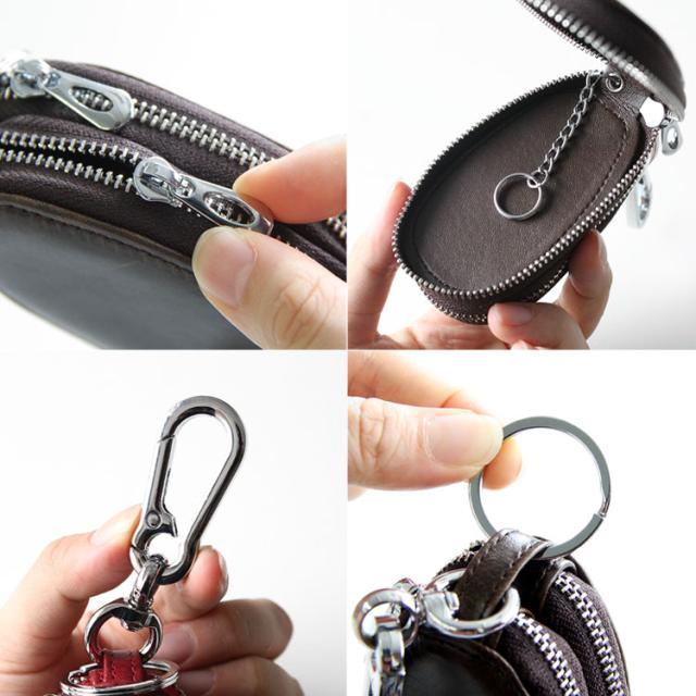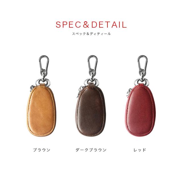 【最大P31%還元☆三太郎の日開催中】メール便送料無料 ダブルファスナー スマートキーケース メンズ レディース ユニセックス 本革 オイルレザー ラウンドファスナー キーケース カラビナ付き ブラウン ダークブラウン レッド ab-kp008