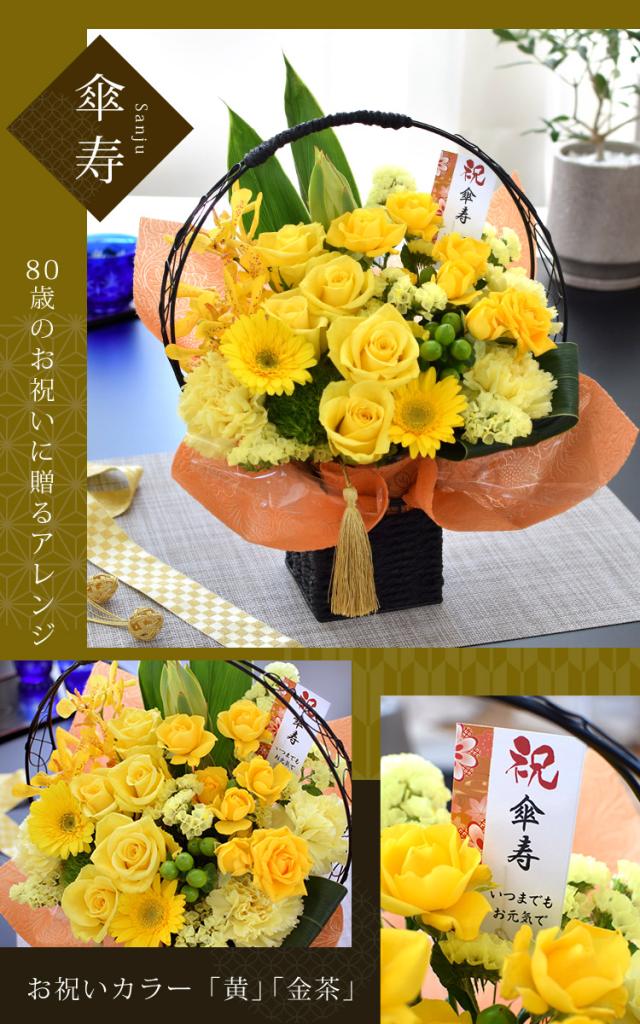 - 母の傘寿のお祝いに贈りました。 小ぶりでしたが、黄色メインの豪華な仕上がりで大変満足です。 母も喜んでくれました。