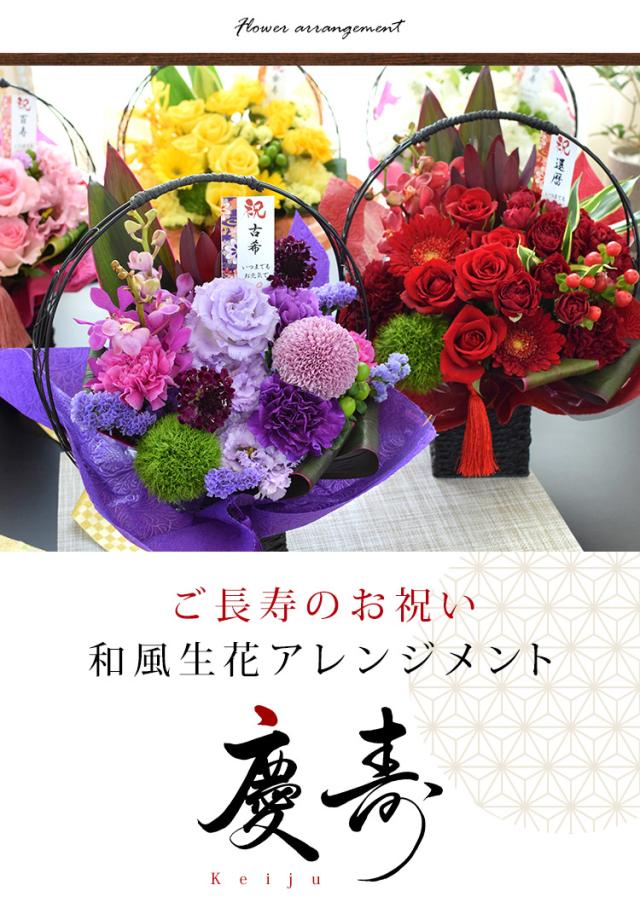 ご長寿のお祝い 和風 生花アレンジ 慶寿(けいじゅ) フラワーアレンジメント お花 ギフト 誕生日 プレゼント 女性 母 義母 祖父 祖母 孫 還暦 古希 喜寿 傘寿 米寿 白寿 百寿 祝い 長寿祝い 花 贈り物 生花 フラワーギフト 還暦祝い お歳暮 冬ギフト クリスマス お正月 新年