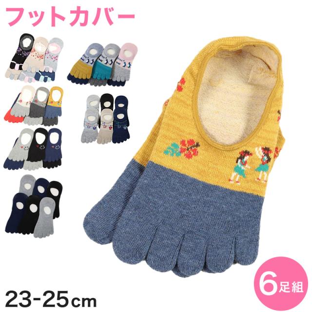レディース フットカバー 5本指 カバーソックス 6足組 23-25cm 5本指 靴下 五本指 ソックス 綿混 五本指靴下 くつ下 くつした 柄 かわいい (在庫限り)