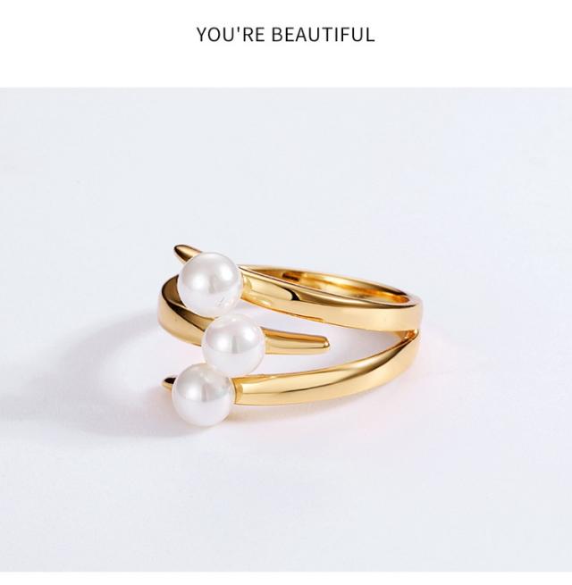 リング 指輪 レディース フリーサイズ 3連パール 真珠 ゴルード シルバー925(純銀)