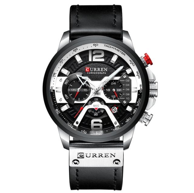 カジュアルスポーツウォッチメンズブルートップブランドラグジュアリーミリタリーレザーウォッチメンズクロックファッションクロノグラフウォッチ。