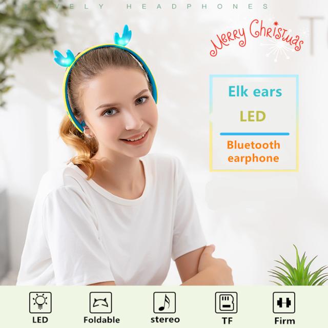 創造的なLED漫画ルミナスエルク耳5.0折り畳み式インイヤーワイヤレスBluetoothヘッドセット