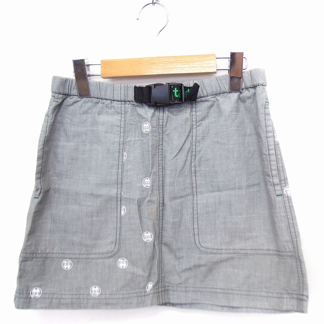 【中古】インハビタント inhabitant スカート 台形 総柄 ミニ コットン 綿 バックルベルト S グレー 灰 /FT レディース