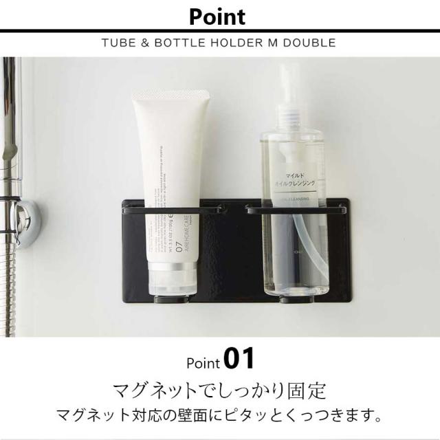 バスルーム 収納 マグネット バスルームラック tower タワー 山崎実業 浮かせる収納 ホワイト ブラック マグネットバスルームチューブ&ボトルホルダー M ダブル