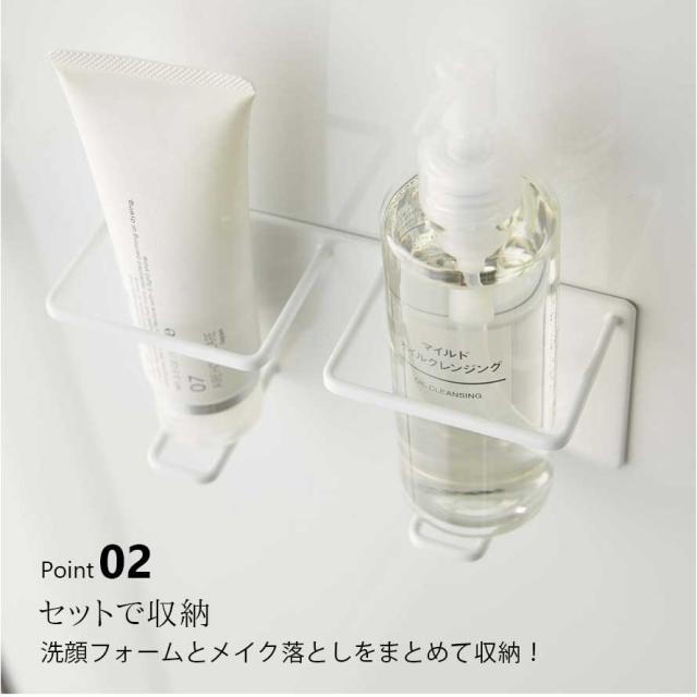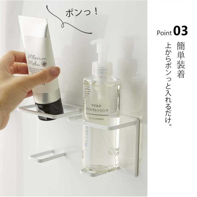 お風呂の壁に強力マグネットで簡単取り付け!洗顔フォームやクレンジングオイルなどの細めのボトルを2本収納できるホルダーです。