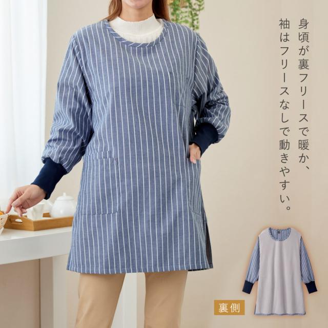 かっぽう着 あったか,割烹着 あったか,エプロン 冬,かっぽう着,かっぽうぎ,割烹着,エプロン,チュニック,裏起毛,フリース,裏フリース,ふわふわ,フワフワ,ふんわり,かぶる,長袖,袖付き,袖あり,スモック,M,L,大きいサイズ,大きめ,LL,3L,ゆったり,動きやすい,ポケット付き,ポケット,秋,冬,冬用,秋冬,ぽかぽか,ポカポカ,暖かい,暖か,あったか,あったかい,暖かい,あたたかい,温かい,冷えない,あったかグッズ,温め,温活,防寒,冷え症,対策,グッズ,冷え対策,寒さ対策,冷え取り,防寒グッズ,冷え,おしゃれ,お洒落,オシャレ,かわいい,可愛い,シンプル,カジュアル,丈長,長め,ロング丈,ロング,お尻が隠れる,体型カバー,着痩せ,細見え,すっきり,お尻,おしり,隠れる,お腹,カバー,大人,レディース,女性,シニア,高齢者,お年寄り,ミセス,30代,40代,50代,60代,70代,家事,料理,キッチン,台所,ギフト,プレゼント,贈り物,誕生日,誕生日プレゼント,敬老の日,ストライプ,ブルー,青,ネイビー,紺,リブ袖,後ろボタン,スリット,柄,