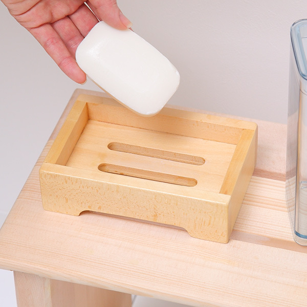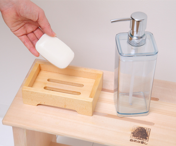 木の心地良い温もりを感じられる石けん台