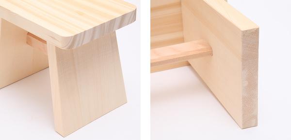 | 安定感のある作り 木に厚みがあるので、安定感があり滑りにくく安全です。 | 厚みのある素材 木の厚みが2.5cmもあるので割れにくく丈夫です。 |