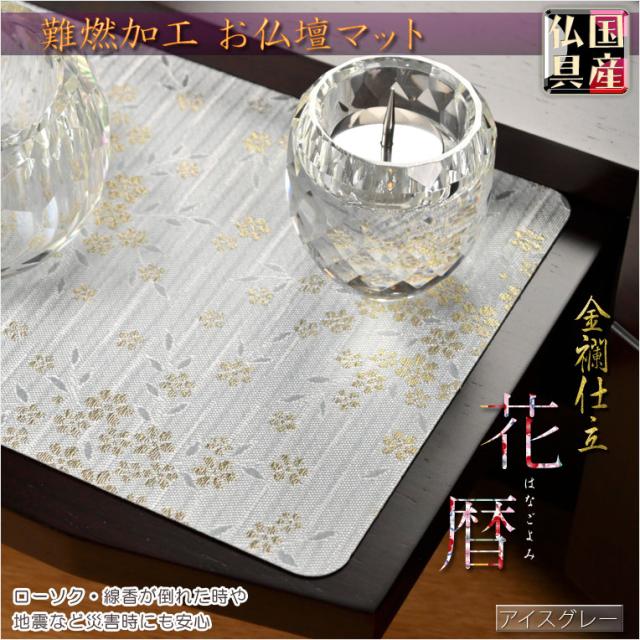 国産仏具【金襴仕立・モダンな防炎マット:花暦(はなごよみ)くちなし柄・アイスグレー】仏壇用仏具 現代調仏具 ネコポス送料無料
