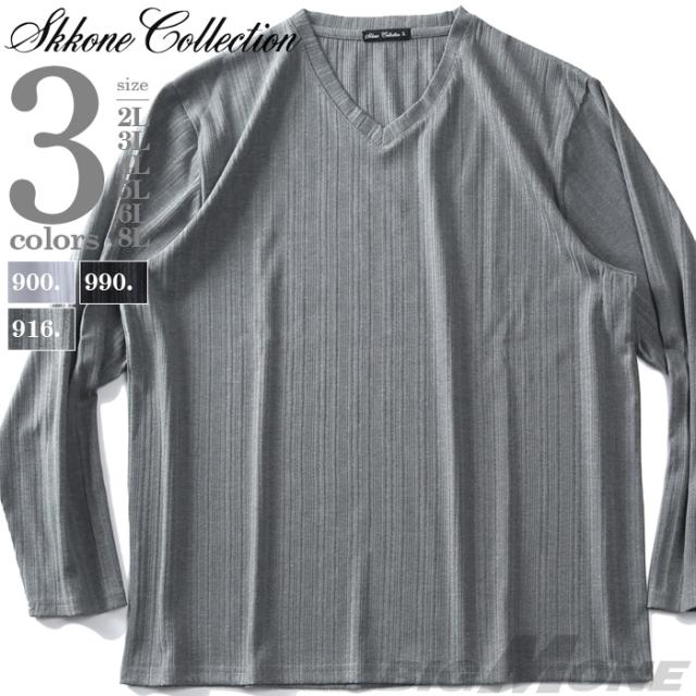 大きいサイズ メンズ SKKONE COLLECTION テレコ Vネック ロング Tシャツ 29492