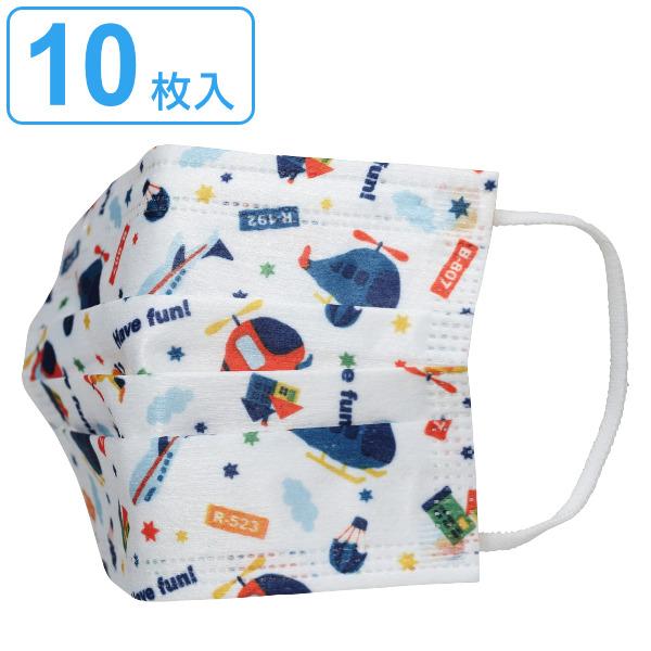 子ども用 マスク 不織布 10枚入 ヘリコプター ( 子供 子ども用マスク 3層構造 花粉 風邪 ほこり 立体プリーツ加工 快適 使い捨て キッズマスク ヘリコプター柄 )