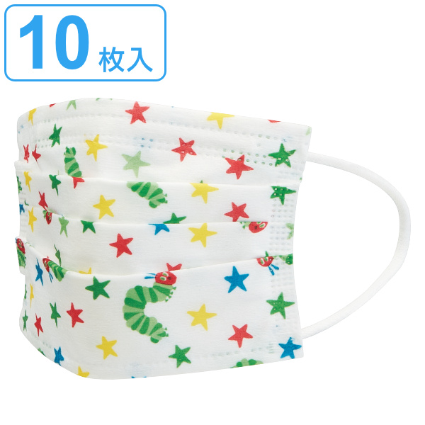 子ども用 マスク 不織布 10枚入 はらぺこあおむし ( 子供 子ども用マスク 3層構造 花粉 風邪 ほこり 立体プリーツ加工 快適 使い捨て キッズマスク キャラクター )