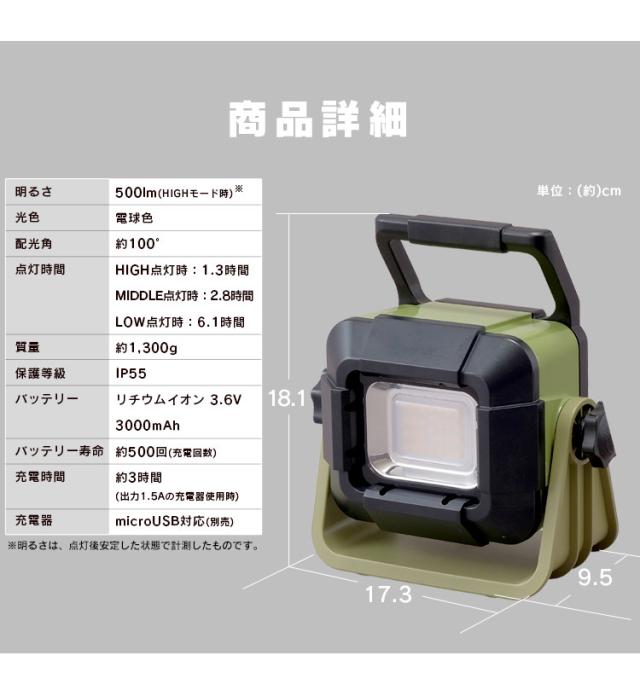 作業灯 投光器 led 充電 LLT-500BB 作業灯 led 充電式 コードレス ベースライト led LEDベースライト 500lm ライト ワークライト 置き型 照明 アウトドア キャンプ 現場 作業灯 作業場 工事現場用ライト 災害 防災 非常時 アイリスオーヤマ