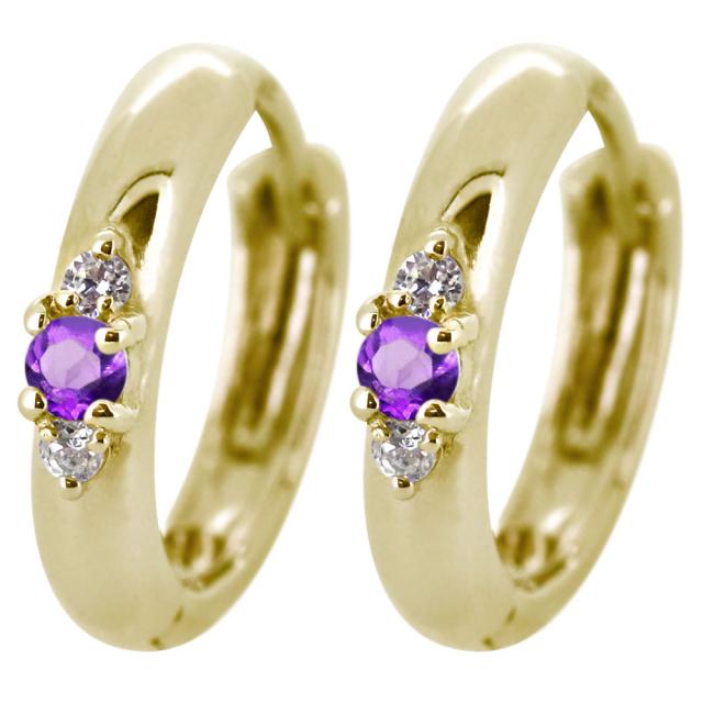 フープピアス 18k レディース 小さめ アメジスト 誕生石 2月 シンプル