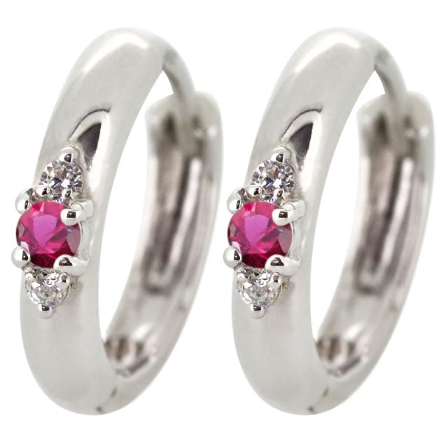 ピアス ルビー 小さめ 小ぶり フープピアス レディース シンプル プラチナ 人気