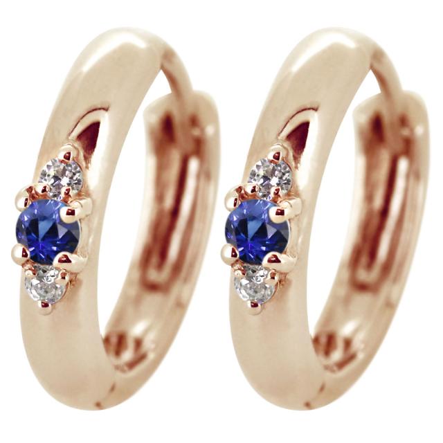 ピアス レディース フープ 小さめ サファイア 9月誕生石 10k 両耳 シンプル
