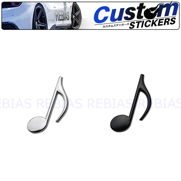 8分音符 エンブレムさりげなく音楽やってます感♪マイカーを簡単にステッカーチューンでドレスアップ!定番から個性的なステッカー・エンブレムまでサッと貼るだけ、飽きたら剥がせばいいんです!リアに貼ってさり気なく個性をアピールするもよし、フロントやサイドでド派手に決めるもよし!アイデア次第で無限に広がるステッカーチューンを是非お試しください♪♪