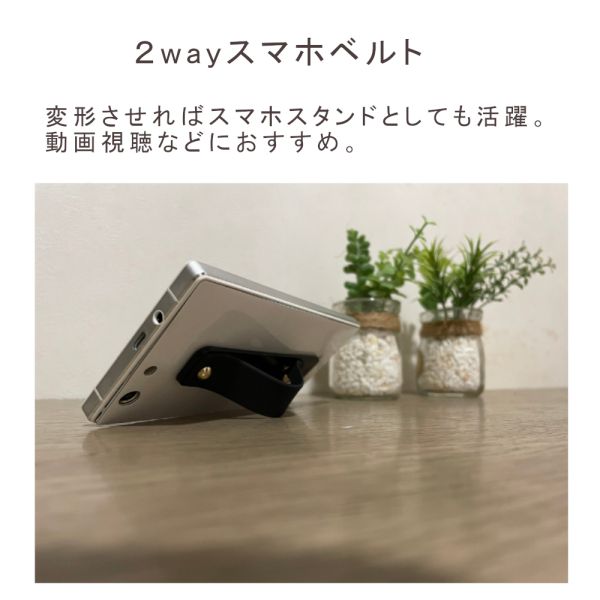 スマホスタンドとしても使える落下防止用スマホベルトです。