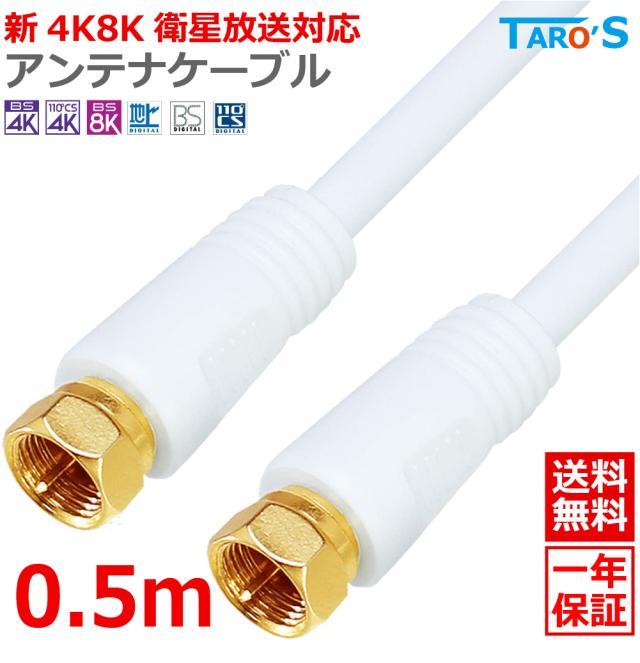 送料無料 テレビアンテナケーブル 0.5m F型-F型 2K 4K 8K BS CS 地デジ 衛星放送 ケーブルTV 対応 ホワイト TVケーブル 同軸ケーブル S-4C-FB F型プラグ⇔F型プラグ 4CFF-005WH タローズ