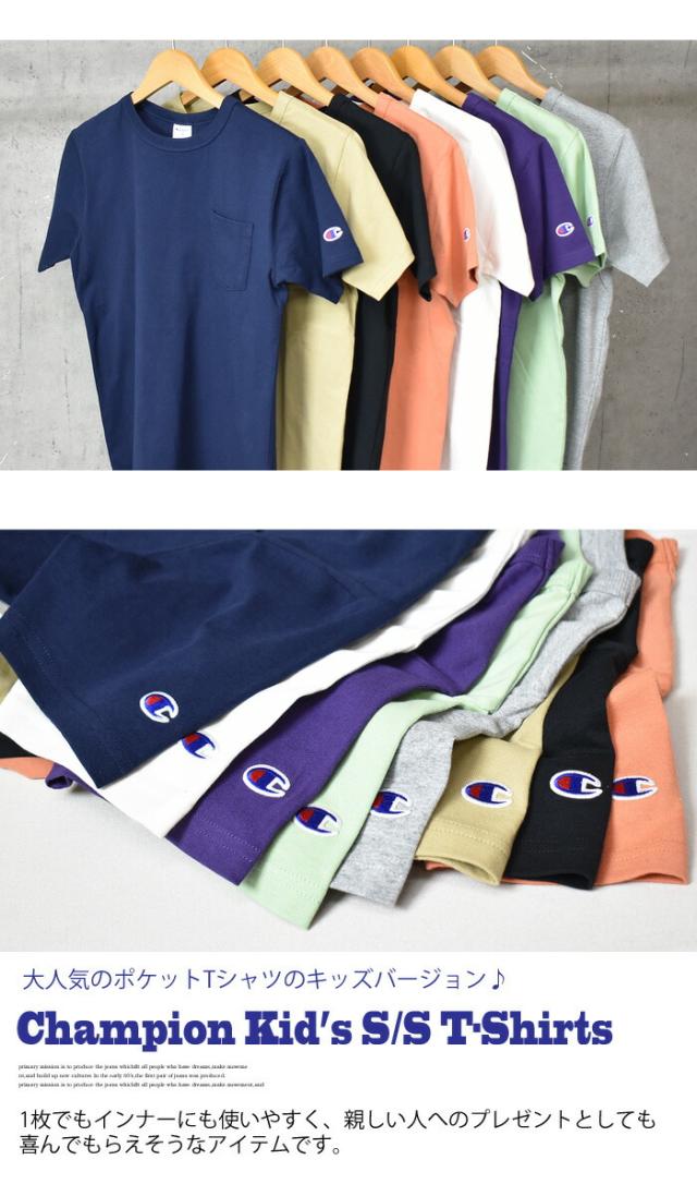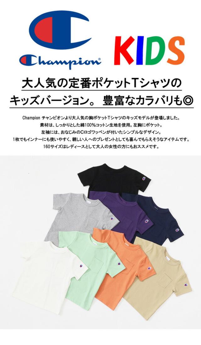 Champion チャンピオン キッズ 胸ポケット 半袖 Tシャツ 130cm 140cm 150cm 160cm 無地 半T 子供服 胸ポケ ポケT ジュニア CK-T303