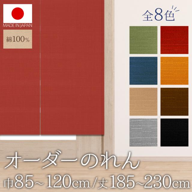 のれん 暖簾 カーテン 間仕切り 仕切りカーテン オーダー 綿100% 無地 日本製 受注生産 選べるサイズ 全9色 無地 5cm刻 幅85〜120cm×丈185〜230cm 【各種後払い不可】