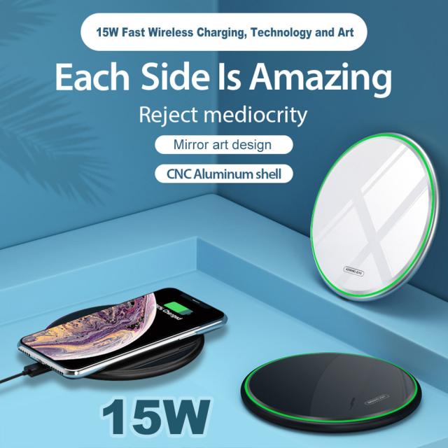 Apple Android 15W高速充電テクノロジーQIワイヤレス充電器アルミ合金ミラーのような光沢のある超薄型Protable