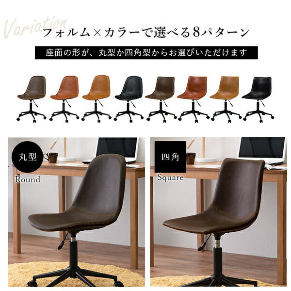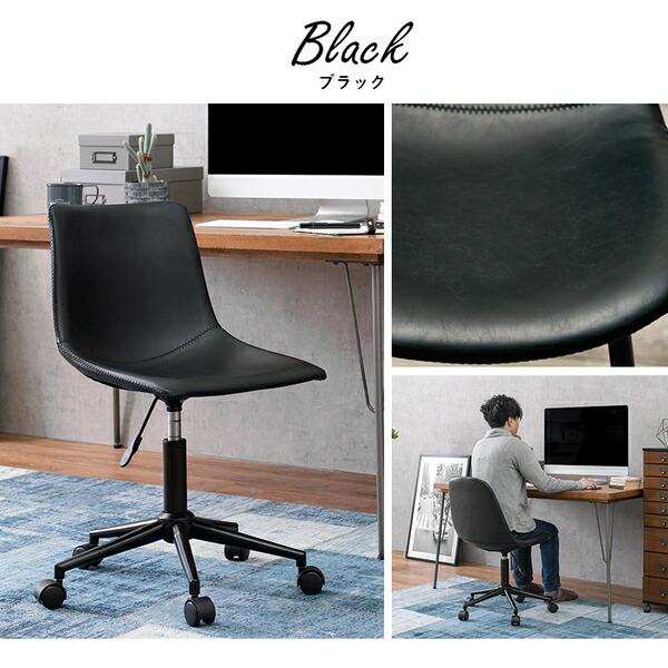キャスター付き 昇降チェア〔ブラック 角型〕パソコンチェア デスクチェア オフィスチェア ビンテージ レザー調 おしゃれ 【北海道・沖縄・離島配送不可】