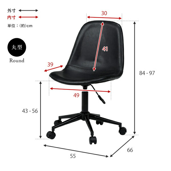 【商品サイズ(外寸)】(約)幅55×奥行56×高さ78〜91×座面高42〜55cm