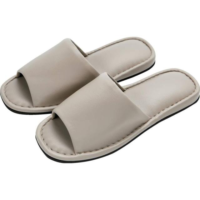 TRUSCO トラスコ中山 TRUSCO フェイクレザー前開きスリッパ フリーサイズ ベージュ