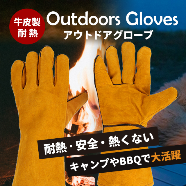 耐熱グローブ 牛革 手袋 キャンプ 本革 手袋 革 耐久性 アウトドア 修理用 吸汗防寒 耐火 作業用 鍋つかみ 焚き火 保護 野外 溶接 グラインダー 溶断 刃物 バーべキュー BBQ 墨 薪 調理 ダッチオーブン