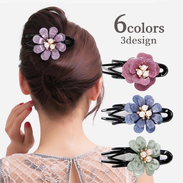 バンスクリップ サイドバンス ヘアクリップ ヘアアクセサリー レディース 女性 婦人 髪留め 髪飾り 花 フラワー クローバー