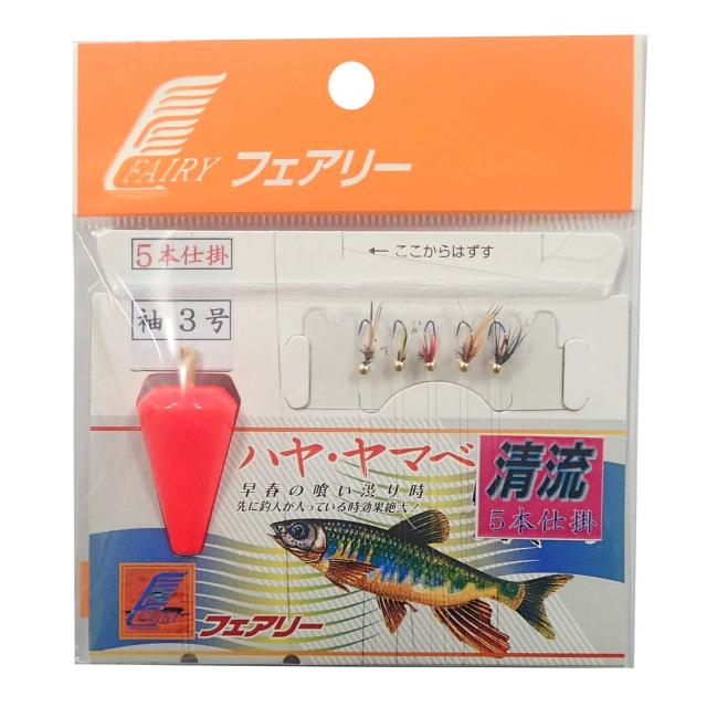フェアリー ハヤ・ヤマベ毛鉤5本仕掛 3号 袖3号