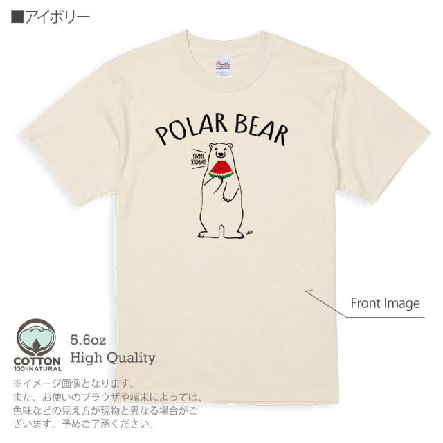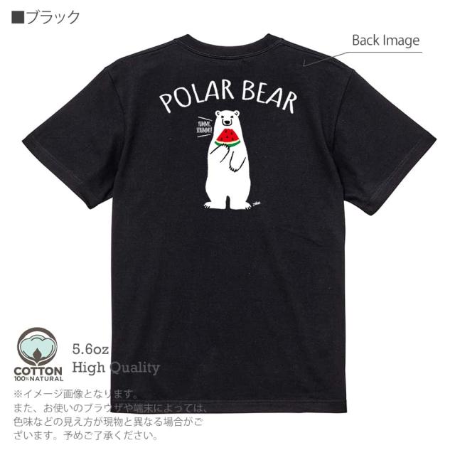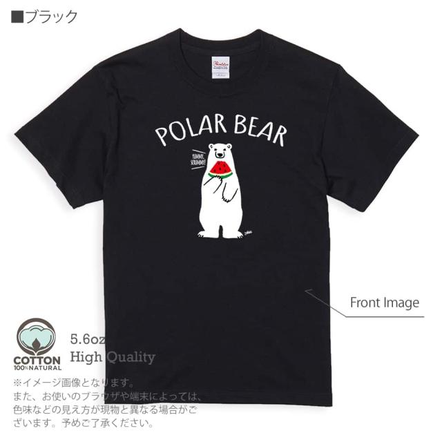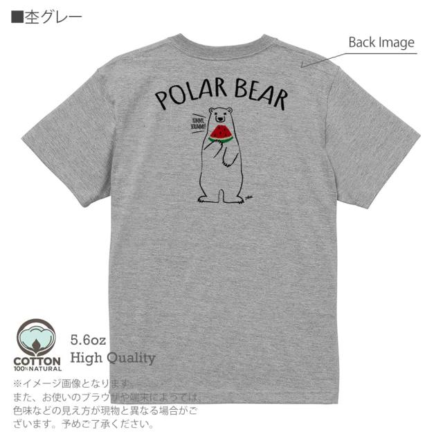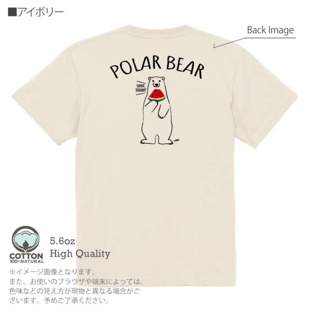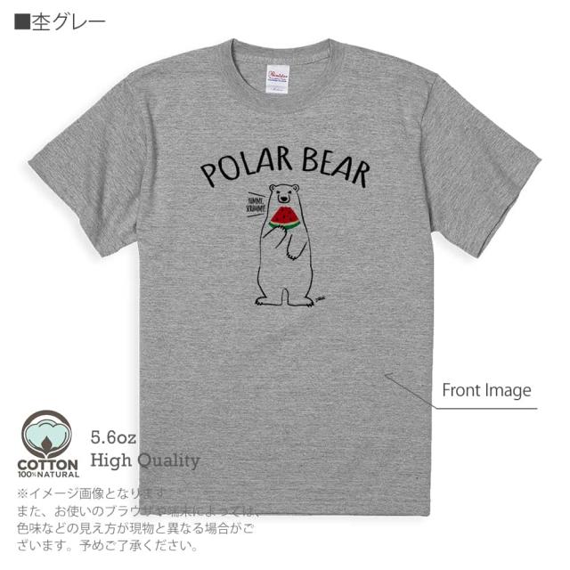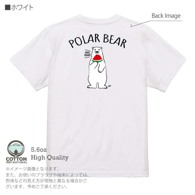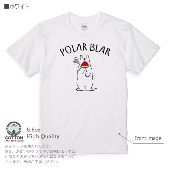 白熊 Tシャツ 半袖 シロクマさんとスイカ(wakat) 5.6oz (オンス) 綿100% メンズ レディース 洗濯 大きいサイズ ホワイト ブラック グレー アイボリー 白 黒 灰色 肌色 春 夏 秋 冬 オシャレ かわいい 白熊 クマ 雑貨