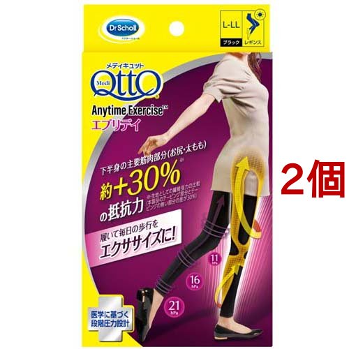 おそとでメディキュット エニタイムエクササイズ着圧レギンス エブリデイ BK L-LL(1足*2個セット)[レギンス・スパッツ]