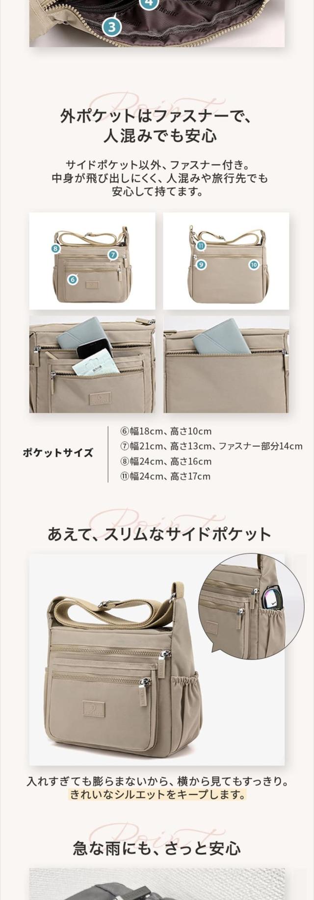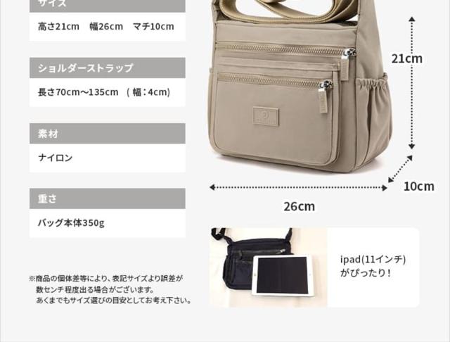 - 使用中のバッグが古くなってきたので同じ位の大きさを探してました。届いたら、色・大きさ・ポケット共に理想通りでした。そしてポスト投函なので頼みやすかったです。