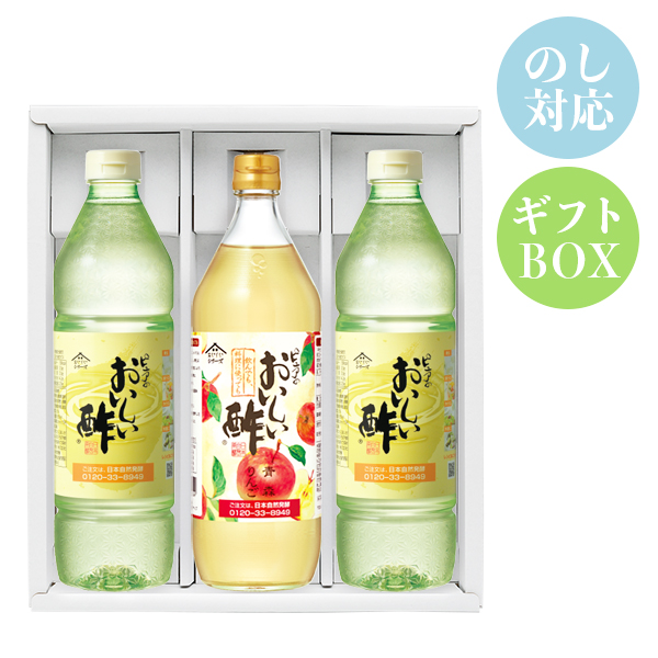おいしい酢 955ml×2本 おいしい酢青森りんご 900ml×1本 日本自然発酵 計3本 ギフトセット 酢 調味料 飲む酢 フルーツビネガー 冬のギフトセット お歳暮
