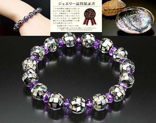 幸運あわびブレス 開運 アクセサリー アワビ 鮑貝 鮑 アメジスト 開運グッズ 開運アイテム ブレスレット メンズ レディース 天然石 パワーストーン 送料無料