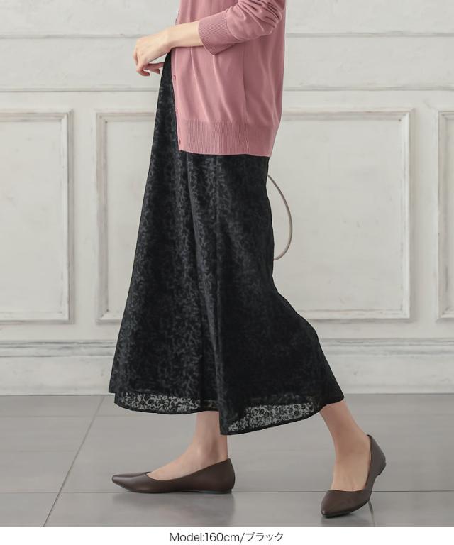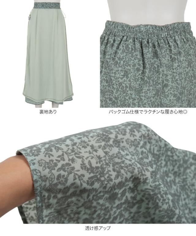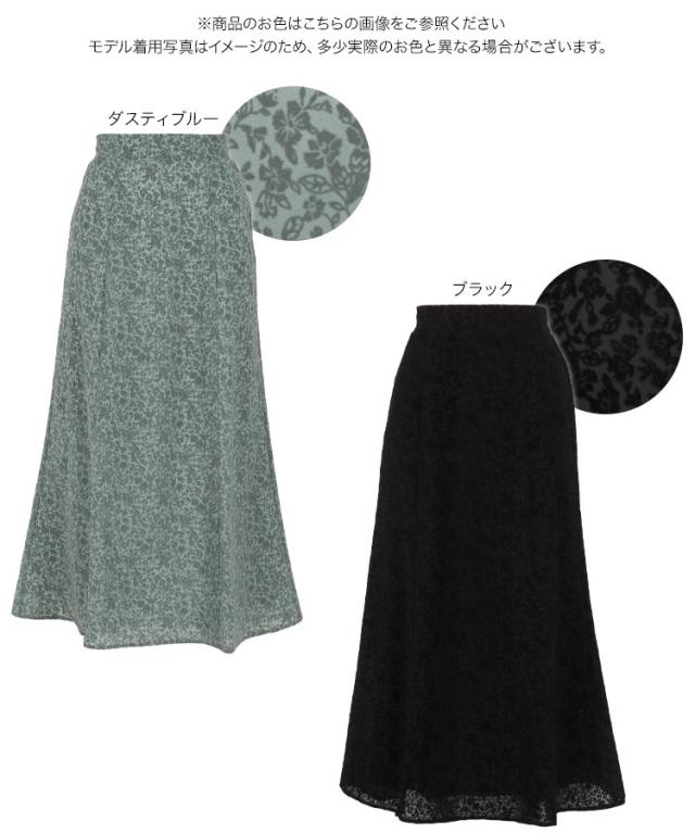 春新作 シフォンフロッキー花柄セミフレアスカート M3397 入荷済 レディース ボトムス スカート フレア バックゴム 上品 大人