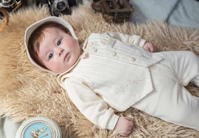 胸の飾りポケットやチーフ、裾の刺しゅうなどディテールにまでこだわった、プリンスの誕生にふさわしい優雅なセレモニーセット。退院、お七夜、お宮参り、お食い始めなど、生まれたての赤ちゃんには大切な行事がたくさんあります。また、兼用ドレスだけでも普段のお出かけ着として使えます。