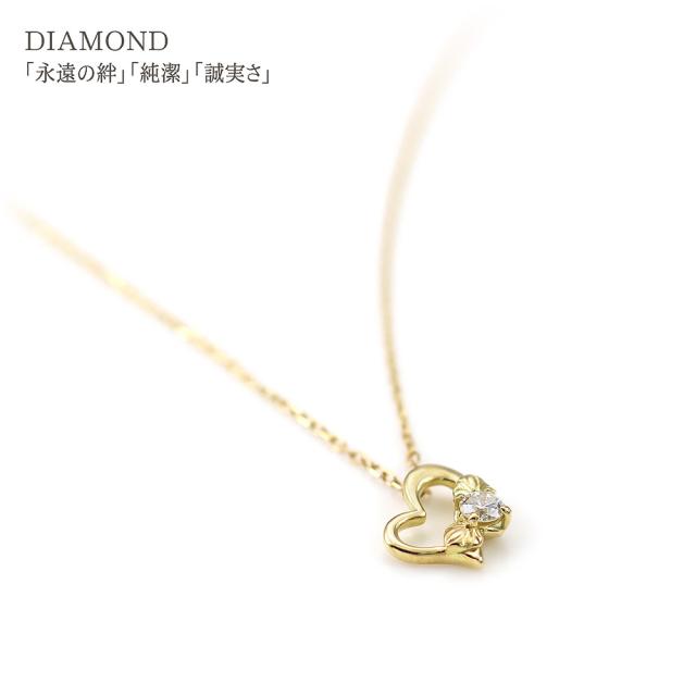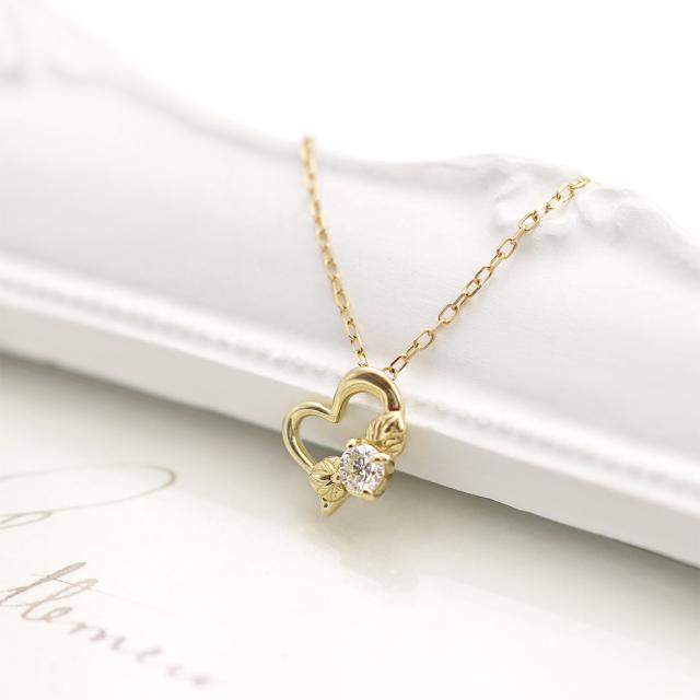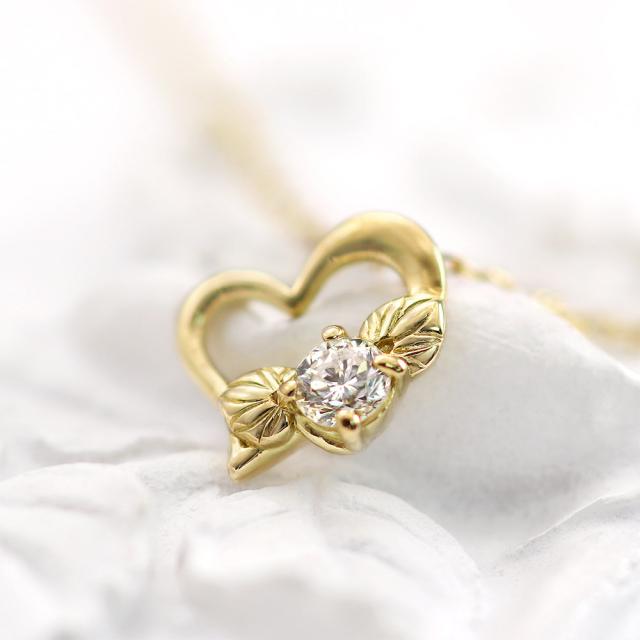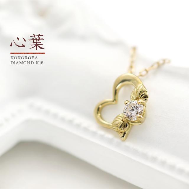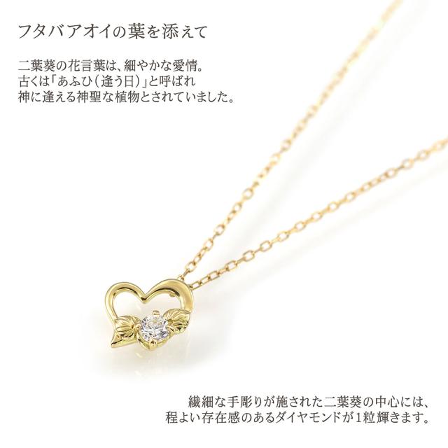 ネックレス レディース ハート 18金 イエローゴールド 天然 ダイヤモンド K18 18K ジュエリー ブランド 「 心葉 」 ふたば葵 モチーフ 葉っぱ 植物 和風 日本 京都 アクセサリー 二葉葵 あおい 葵祭 個性的 記念日 誕生日 ギフト 贈り物 女性 彼女 妻 長め 大きいサイズ