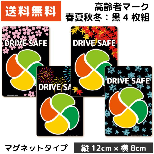 四季デザイン カーステッカー 高齢者マーク ブラック/黒 春夏秋冬4枚組 ( マグネット タイプ) MG-FSBK-4 / シルバーマーク シニア もみじマーク 高齢者ステッカー 高齢運転者標識 安全運転 日本製 おしゃれ かっこいい 日本人らしい 和風 和心
