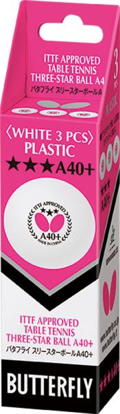 BUTTERFLY バタフライ TAMASU タマス バタフライ_スリースターボールA40+(3コ) (95770) [色 : ホワイト]【入数:24】