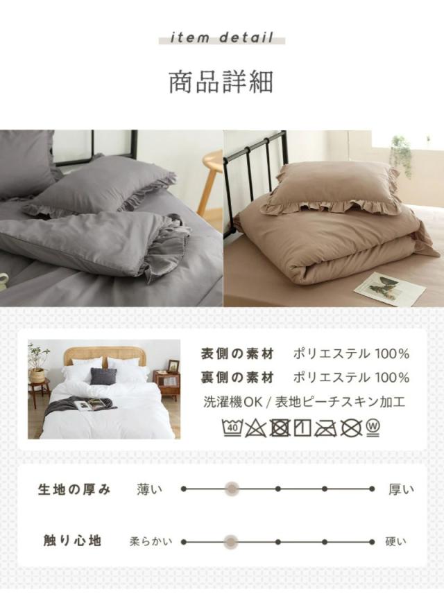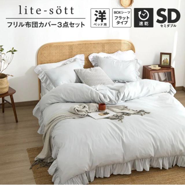 布団カバー 3点セット フリル付き セミダブル フラットボックスシーツ タイプ おしゃれ ピーチスキン オールシーズン 布団カバーセット 寝具 新生活(代引不可)【送料無料】